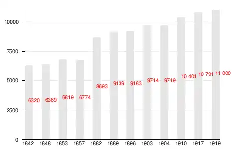 Изменение численности прихожан с 1842 по 1919 год[8][9][10]: