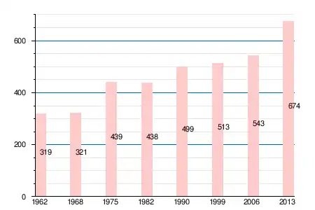 Население коммуны в 2011 году составляло 666 человек[6], в 2012 году — 668 человек[7], а в 2013-м — 674 человека[5].