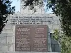 Надпись на восточном фасаде верхнего яруса постамента «СЛАВА ВАМ, ХРАБРЫЕ, СЛАВА, БЕССТРАШНЫЕ, ВЕЧНУЮ СЛАВУ ПОЕТ ВАМ НАРОД, ДОБЛЕСТНО ЖИВШИЕ, СМЕРТЬ СОКРУШИВШИЕ, ПАМЯТЬ О ВАС НИКОГДА НЕ УМРЕТ». Надпись на западном фасаде верхнего яруса постамента: «ГЕРОЯМ БИТВЫ ЗА СЕВАСТОПОЛЬ». Памятная доска с высеченным текстом, окрашенным бронзовой краской: «Сооружен отдельной Приморской армией в 1944 году по проекту архитектора лейтенанта А. Д. Киселёва. Реконструирован в 1962 г.»[4].