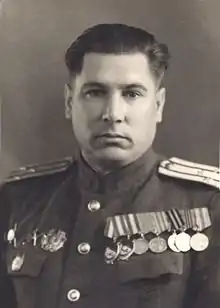 - Награждён тремя орденами Красного Знамени, орденами Александра Невского, Отечественной войны 1-й степени и двумя орденами Красной Звезды, а также медалями, среди которых «За оборону Москвы».