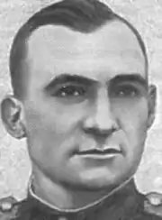 15.01.45 г. в районе Юзефув своим взводом разгромил колонну противника из 15 орудий на марше и две колонны автомашин — до 70 единиц — с военными грузами.