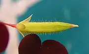 Листочки обратносердцевидные, голые или иногда волосистые, по краю реснитчатые с маленькими, длиной 0,3 мм, расположенными в основании 3-6(8) слабоопушённых цветоножек длиной 4-6 мм.