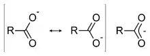 - Мезомерный эффект (резонансный эффект). Если в анионе, образующемся при диссоциации кислоты, отрицательный заряд распределён между несколькими атомами за счёт явления резонанса, то такой анион стабилизируется и кислотность соединения возрастает. По этой причине карбоновые кислоты — более сильные кислоты, чем соответствующие им спирты (отрицательный заряд карбоксилат-ионов распределён между двумя атомами кислорода). Подобный эффект реализуется также в фенолах, где в стабилизации отрицательного заряда сопряжённого основания принимает участие ароматическая система[4][29].