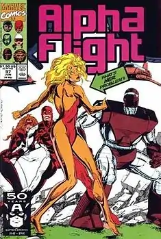 ![]() Она на обложке Alpha Flight #97 (Июнь, 1991) | |