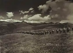 После нескольких месяцев неудачных переговоров,[55] попыток Тибета заручиться иностранной поддержкой и помощью,[56] КНР и наращивание тибетских войск Народно-освободительная армия (НОАК) пересекла реку Цзиньша 6 или 7 октября 1950 года.[57][58] Два подразделения НОАК быстро окружили числовые тибетские силы и к 19 октября захватили пограничный город Камдо, к этому времени 114 солдат НОАК[59] и 180 тибетских[59][60][61] солдат были убиты или ранены. В 1962 году Чжан Гохуа заявил, что «более 5700 вражеских людей было уничтожено» и «более 3000» мирно сдалось.[62] Активные боевые действия были ограничены пограничным районом к северо-востоку от реки Гьямо Нгул Чу и восточнее 96-го меридиана.[63] После захвата Чамдо, НОА прекратила военные действия,[60][64] послала захваченного командира Нгапо в Лхасу, чтобы подтвердить условия переговоров, и ждала, пока представители Тибета ответят через делегатов в Пекин.[65]