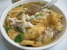 | Кисло-острый суп с лапшой | 酸辣肉絲湯麵 | 酸辣肉丝汤面 | suān là ròu sī tāngmiàn | Суп с лапшой, в который входят горчица, жареный фарш, лапша и бульон. |