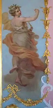 Потолок украшает плафон Д. Маджотто «Урания, обучающая юношу», паркет же, в многом перекликающийся с лепкой потолка и резным украшением алькова[L 7], считается одним из лучших во дворце[L 1][L 9]. Он выполнен из ореха, палисандра, самшита, лимона, берёзы и чёрного дерева[L 7].