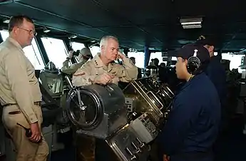 - Commander, 5th Fleet visits Nimitz, CVW-11 Sailors. Военно-морские силы США (28 августа 2003). Дата обращения: 17 февраля 2015.