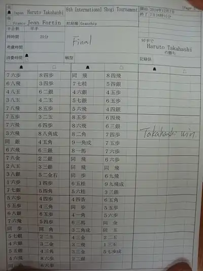 - Пример японского бланка: кифу 3-й партии финального матча Рюо сезона 2013 года (Ватанабэ—Мориути).