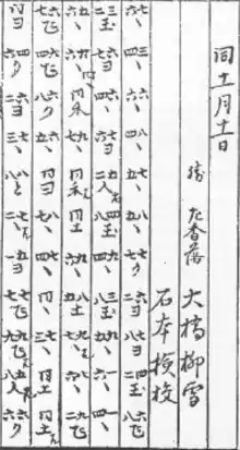 Для записи ходов в японских кифу используются следующие иероглифы: