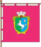 - Синий цвет герба означает верность, честность горожан, их безупречность в труде, а также водные ресурсы, которыми так богат город;