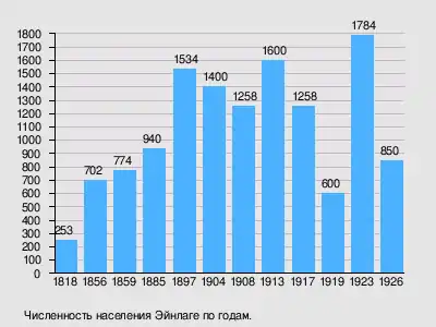 В 1919 в Эйнлаге 11 человек были убиты махновцами, в 1929-41 депортированы 268 чел. В 1923 эмигрировали 23 чел.[6]