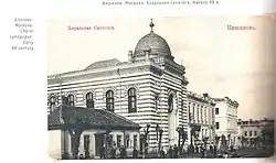 Построена на улице Синадиновской (ныне Влайку Пыркэлаб) в 1913 году на средства еврейской общины города. Выстроенная напротив городской Талмуд-Торы (общинной еврейской школы) синагога первоначально замышлялась как молельный дом для учащихся, но вскоре после завершения работ стала главным еврейским молельным домом города и самым большим из 77 имеющихся еврейских молельных домов. Здание с фасадом в неомавританском стиле состояло из трёх помещений общей площадью в 1350 квадратных метров и имело жестяное покрытие. Свод купола был расписан изображением звёздного неба в виде зодиакальных созвездий. Перед главным входом была помещена мраморная мемориальная доска в память об одном из пожертвователей Д. Х. Хигере, упавшем с лесов во время осмотра строительства синагоги в 1910 году.
