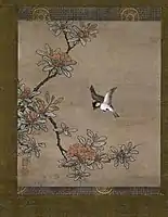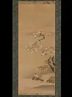 - 小川に連雀桜竹図 Waxwings, Cherry Blossoms, and Bamboo by a Stream. The Metropolitan Museum of Art.