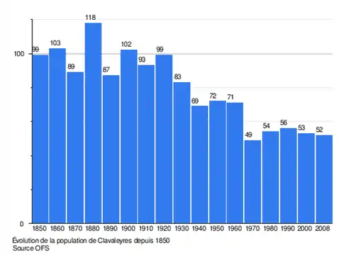 По состоянию на 2008 год численность населения составляла 52,1% мужчин и 47,9% женщин. Население состояло из 23 швейцарских мужчин (47,9% населения) и 2 (4,2%) мужчин, не являющихся швейцарцами. Среди них было 23 швейцарских женщины (47,9 процента) и 0,0 процента женщин, не являющихся швейцарцами. Из всего населения муниципалитета 25 или около 47,2% родились в Клавалейресе и жили там в 2000 году. 16 или 30,2% из них родились в одном кантоне, в то время как 10 или 18,9% родились где-то еще в Швейцарии, а 1 или 1,9% родились за пределами Швейцарии.