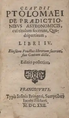 Кла́вдий Птолеме́й (др.-греч. Κλαύδιος Πτολεμαῖος, лат. Claudius Ptolemaeus, ок. 100 — ок. 170)[1] — позднеэллинистический астроном, астролог, математик, механик, оптик, теоретик музыки и географ. Жил и работал в Александрии Египетской (достоверно — в период 127—151 гг.[2][3]), где проводил астрономические наблюдения.