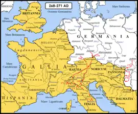 В первый год правления Клавдию очень помогло ослабление Галльской империи. Среди войск, стоявших на рейнской границе, распространялось недовольство Постумом. Весной 269 года высокопоставленный военачальник Ульпий Корнелий Лелиан провозгласил себя императором в столице Верхней Германии Могонциаке, опираясь, вероятно, на поддержку XXX Победоносного Ульпиева легиона, стоявшего лагерем в Кастре Ветере. Постум одержал победу над мятежником, но при этом отказался предоставить своим солдатам на разграбление Могонциак. Это оказалось причиной его падения. Разгневанные легионеры взбунтовались и убили Постума. Выбранный войсками Марк Аврелий Марий стал новым императором Галлии. Однако его правление продлилось недолго, и вскоре префект претория Викторин сверг его. Впрочем, вскоре положение самого́ Викторина стало шатким[68][69].