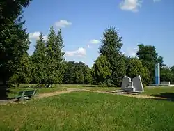 На главной аллее кладбища находится обелиск с пятиконечной звездой, на котором размещена надпись на польском языке: