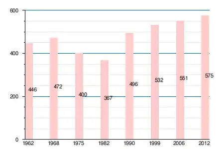 | 1962 | 1968 | 1975 | 1982 | 1990 | 1999 | 2006 | 2008 | 2011 | 2012 |