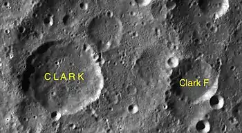 - Образование сателлитного кратера Кларк F относится к нектарскому периоду[4].