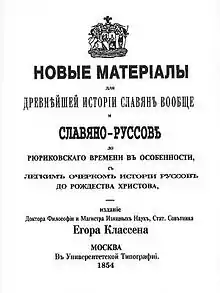 - Новые материалы для древнейшей истории славян вообще и Славяно-Русов до рюриковского времени в особенности с лёгким очерком истории руссов до Рождества Христова (1854—1861);
