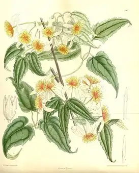 Вечнозелёные вьющиеся кустарники. Цветы образуются в пазухах листьев побегов предыдущего года в конце зимы и весной. Цветки одиночные, чашеобразные или более или менее плоские, 4—7(—10) см в диаметре. Чашелистики 4-6, белые или розовые. Листья кожистые, тройчатые, иногда перистые[1]. Зоны морозостойкости: 7—9[3].