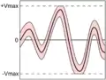 Более жёсткие определения оговаривают не только недопустимость отсечки, но и недопустимость насыщения (ограничения максимального тока) усилительного элемента. По определению М. А. Бонч-Бруевича, «режим А характеризуется тем, что при действии сигнала рабочая точка не выходит за пределы практически прямолинейного участка динамической характеристики лампы. При этом нелинейные искажения минимальны, но коэффициент полезного действия (КПД) каскада оказывается низким» из-за необходимости пропускать через усилительный элемент значительный ток покоя[10]. В транзисторной радиотехнике каскад, отвечающий процитированному определению, называют недонапряжённым, а каскад, в котором на пике сигнала наблюдается насыщение или ограничение тока — перенапряжённым («напряжённость» в этом контексте есть относительная мера амплитуды входного сигнала). Режим работы на границе недонапряжённого и перенапряжённого состояний называется критическим[11][12].
