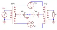 | Ламповый усилитель класса АB, работающий c сеточными токами | [76][77][68] | Анализ и расчёт каскада:[78] | ||||