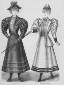 Портные, делая женские костюмы, использовали мягкие ткани и стремились подчеркнуть женственность в своих работах. Костюм с юбкой стал повседневной женской одеждой, его надевали, когда шли на работу или по городу. На полуофициальные мероприятия надевали коктейльные костюмы.