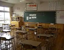 Класс — обычно большая, специально оборудованная комната. Большую часть класса занимают места для слушателей, ориентированные в одну сторону, обычно до 40 посадочных мест. Как правило имеется доска для записей либо экран для видеоинформации. Имеется возможность вывешивания плакатов. В классе устроено многоламповое освещение, и как правило большое количество высоких и широких окон. Школы состоят из многих устроенных в них классов.