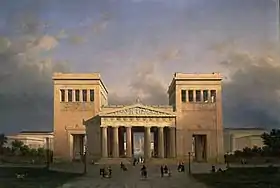 После поражения Наполеона в «Битве народов» под Лейпцигом в 1813 году, соперничество Пруссии и Баварии за первенство в объединении немецких земель выразилось в своеобразном соревновании по созданию «национального стиля» в искусстве. Архитектор Карл Фридрих Шинкель в Берлине создавал стиль «прусского эллинизма», как бы заочно противостоявший ампиру побеждённой Франции. Кронпринц Баварии Людвиг I, ненавидивший Бонапарта, ещё до вступления на престол, также пристрастился к архитектуре, осознавая её государственное значение. Король Людвиг стал одним из главных идеологов национально-романтического движения филэллинизма (нем. Philhellenismus ) в Баварии. Если французская архитектура периода диктатуры Наполеона создала стиль ампир, ориентированный на искусство императорского Рима, то Бавария короля Людвига будет вдохновлена искусством демократических Афин. Поэтому король задумал превратить Мюнхен в «Новые Афины на Изаре» (нем. Neues Athen auf Izar )[11].