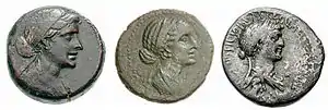 ![]() Бюст Клеопатры VII из Шершелл в Алжире (Берлинское античное собрание). На Клеопатре царская диадема и повязка на волосах. | |