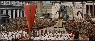 Film? Why not raise up such a noise with the size of the thing that the crowds will come simply out of curiosity? Why not make, for instance, Cleopatra?Конец 1950-х годов — время, когда телевидение начало составлять серьёзную конкуренцию кинотеатрам, и студии были вынуждены искать новые возможности для привлечения зрителей в залы. В такой сложной обстановке постановка высокобюджетных картин была как никогда рискованной, но крупные компании вынужденно шли на затраты. Зрителей ещё могли привлечь роскошные постановки и кинозвёзды, то, что телевидение пока не могло себе позволить[8]. Технологический потенциал кинематографа также не был исчерпан. С 1950-х начала успешно развиваться технология широкоэкранного и широкоформатного кино, как нельзя лучше соответствовавшая подобным масштабным постановкам[9]. В 1955 году был снят первый фильм в широкоформатной технологии Todd AO. Передовая разработка распространялась в одно время с новшеством в сфере проката — системой roadshow. Дистрибьютеры опробовали такой вариант, когда первоначально лента попадала на экраны в избранной, достаточно малочисленной сети кинотеатров с дорогим тогда прокатным оборудованием, рассчитанным на плёнку 65-70 мм. Билеты на roadshow, стоившие дороже билетов в обычные кинотеатры, продавались по системе предварительного бронирования мест[10].