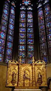 У южных врат трансепта размещены в вертикальном положении могильные камни каноников. Витражи хоров, сверкающие и многоцветные, отличаются игрой света. Их необходимо читать снизу вверх и слева направо. На них описано житие святых покровителей каждой отдельной часовни.