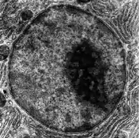 Кле́точное ядро́ (лат. nucleus) — окружённая двумя мембранами органелла (компартмент) эукариотической клетки[1] (в клетках прокариот ядро отсутствует). Обычно в клетках эукариот имеется одно ядро, однако некоторые типы клеток, например, эритроциты млекопитающих, не имеют ядра, а другие содержат несколько ядер.