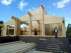 Широко применяются как традиционная для России и Северной Америки срубовая конструкция, так и стоечно-балочная конструкция.
