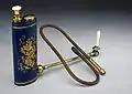 В составе реанимационного набора начала XIX века: шприц из слоновой кости, мех, наконечники для клизм и кожаная трубка для их соединения, позволяла поставить также табачную клизму