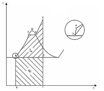 Поэтому парокомпрессионный холодильный цикл удобно представить в координатах T и S (температура и энтропия). В основе работы холодильника лежит обратный цикл Ренкина.