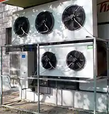 Конденсатор передает тепло от хладагента в окружающее пространство. Хладагент охлаждается в конденсаторе и кондесируется в жидкость. Климатическое оборудование может передавать тепло как из охлаждаемого помещения при охлаждении, так внутрь помещения при обогреве. В качестве конденсатора может выступать как внутренний, так и внешний блок сплит-системы. Максимальная температура конденсатора ограничивается параметрами критической точки хладагента.