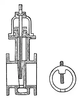 Главное отличие клинкета от традиционного клапана состоит в том, что диск, закрывающий отверстие для прохода рабочей среды, не опускается на гнездо по направлению его оси, а скользит, как задвижка, по притертой поверхности гнезда[2].