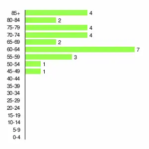 | Жителей | 591 | 645 | 461 | 222 | 91 | 69 | 44 | 26 | 28 |