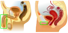 ![]() Женские тазовые органы в продольном разрезе | |
