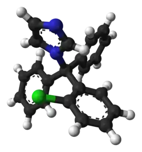 Клотримазол (действующее вещество: 1-[(2-хлорфенил)дифенилметил]-1Н-имидазол) — распространенное синтетическое противогрибковое лекарственное средство из группы производных имидазола для наружного и местного (в том числе интравагинального) применения. Он относится к классу азолов и работает, разрушая клеточную мембрану грибка[1]. Он используется для лечения вагинальных дрожжевых инфекций, молочницы полости рта, опрелостей, отрубевидного лишая и различных видов стригущего лишая, включая эпидермофитию стопы и зуд спортсмена[1].