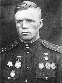 - дважды Герой Советского Союза (13.04.1944, 27.06.1945 — посмертно[7][8]);