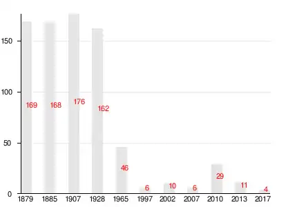 | 1879 | 1885 | 1909[16] | 1928 | 1965 | 1997 | 2007[17] |