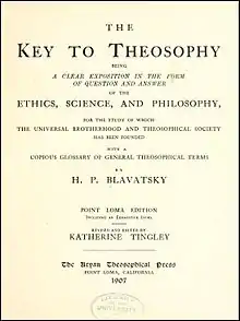 «Ключ к теософии» (англ. The Key to Theosophy) — книга Елены Петровны Блаватской, в форме вопросов и ответов доступно разъясняющая идеи и принципы теософии (в частности, о природе человека, жизни после смерти, реинкарнации, карме и т. д.)[K 1]. В предисловии автора говорится, что это «не полный или исчерпывающий учебник по теософии, а лишь ключ, чтобы отпереть дверь, ведущую к более глубокому изучению».