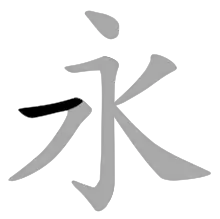 В иероглифике и каллиграфии является одной из графем — горизонтальной чертой хэн (橫 héng). Входит в восемь принципов иероглифа юн.