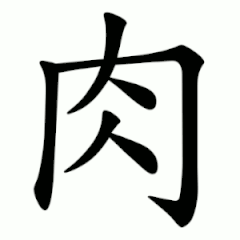 Современный иероглиф обозначает «мясо», «плоть», «плотский», «тело», «телесный», «кровный».