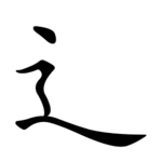 Иероглиф используется в значении «гулять, идти (бежать) с остановками». Полная форма иероглифа 辵 довольно сложна, поэтому его употребляют в сокращенном виде 辶.