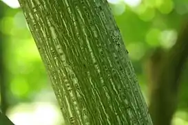 Листопадное дерево достигает в высоту 15 м, при ширине кроны до 9 м, может расти также в виде кустарника. Молодая кора зелёная, с вертикальными белыми полосами, с возрастом становится тёмно-серой, однако узор сохраняется. Свойственна андромоноэция.